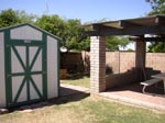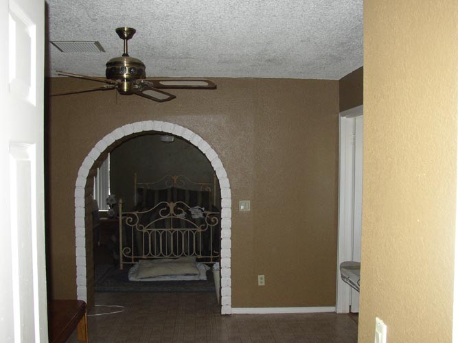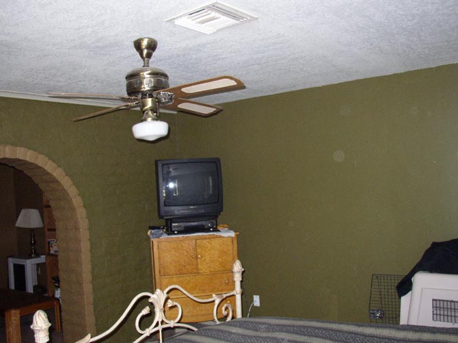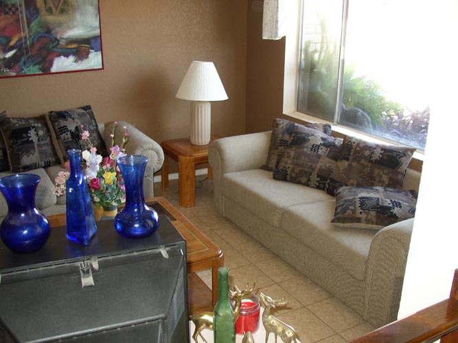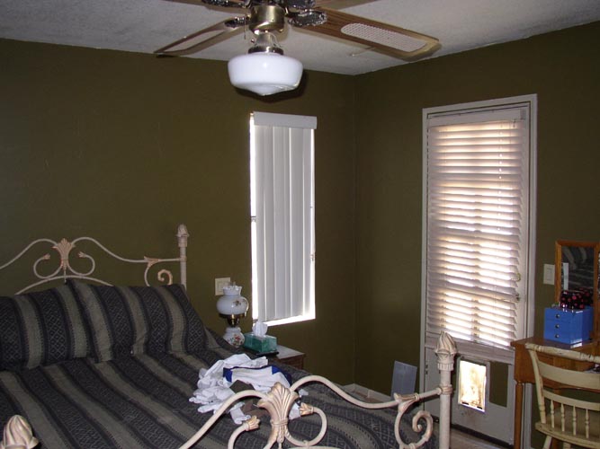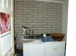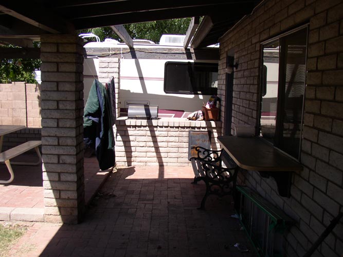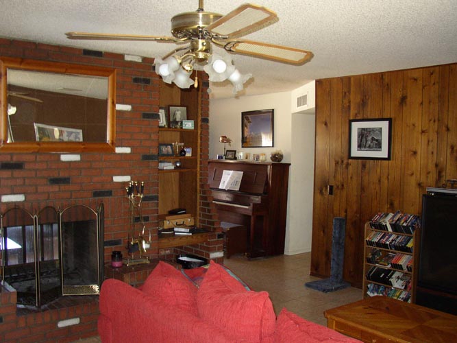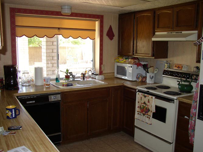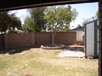 | Looking into laundry room from pantry/storage room | Living room (I don't like that wood paneling) | Kitchen w/ window to backyard | Backyard (Cactus Rd is on the other side of that fence) |