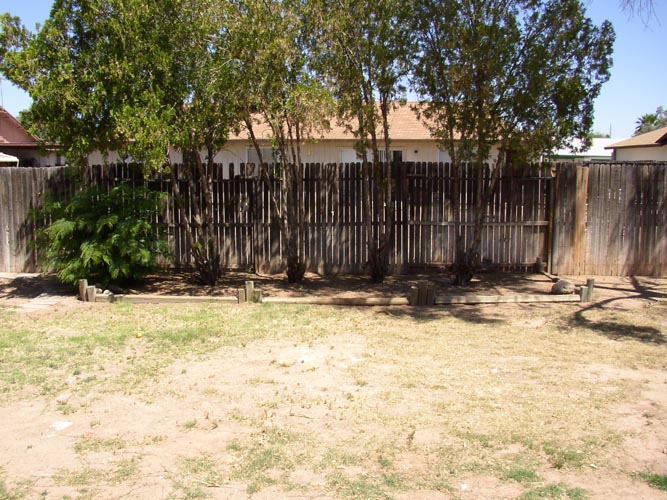 and size of the bedrooms (there's 5 bedrooms in a 1600sqft place), the chain-link fence in the front yard, and the wooden fence in the backyard. The second two could be