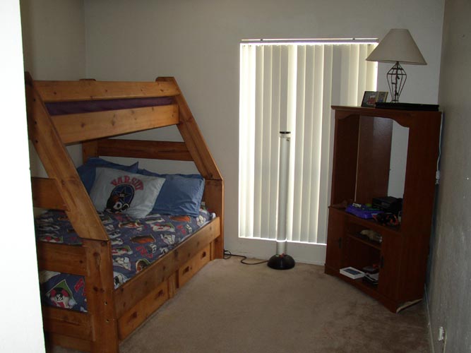 | Closet in master bedroom | One side of Living area | Kitchen | Other side of living area; that door goes to one of the bedrooms |