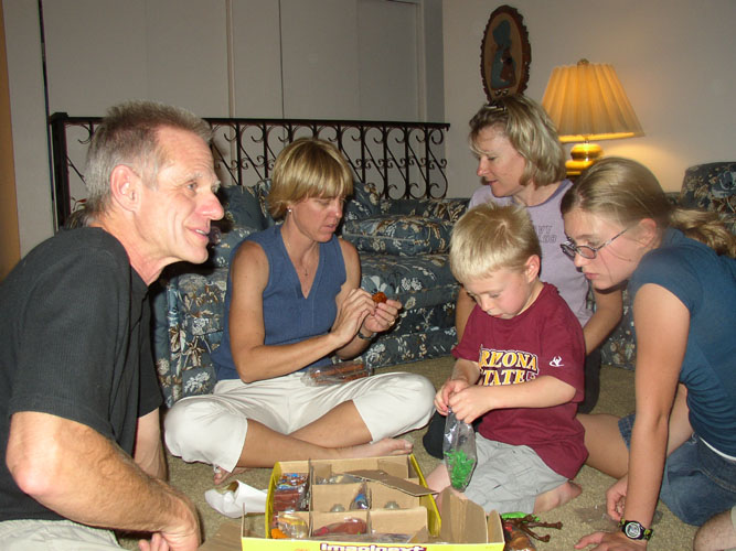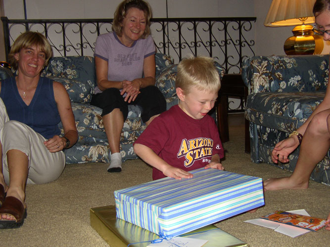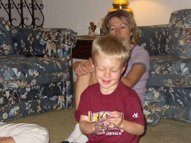 Hank, Karen, and Joel came over to Ginny's house the Wednesday after Joel's 6th birthday so that we