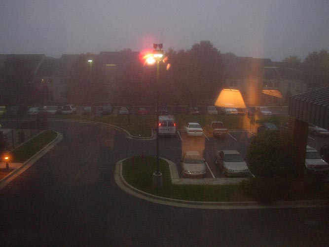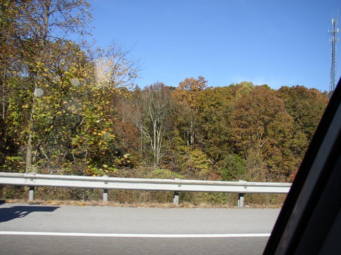 | Morning fog at the hotel | Foliage through the passenger window | Cool hillside | On the road |