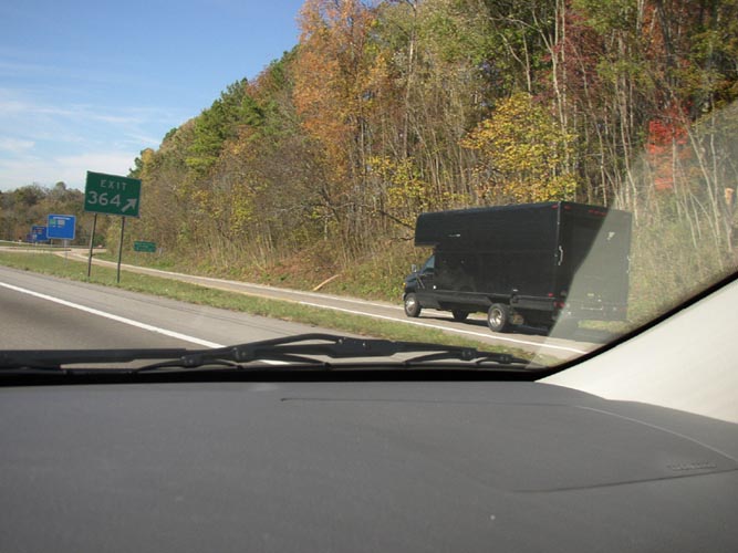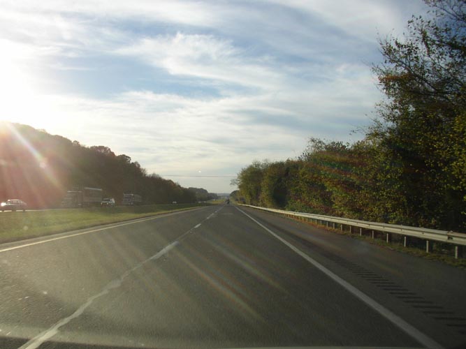 | He just had a tire blowout | Neat perspective | Another "down the road" shot | I stopped for this one, pretty fall colors |